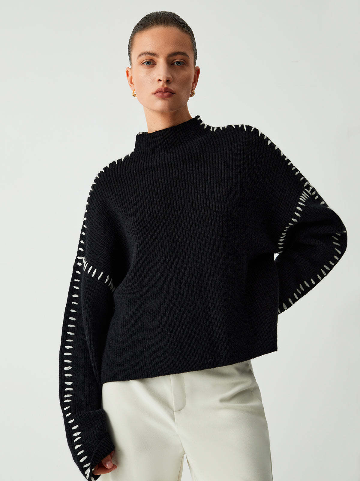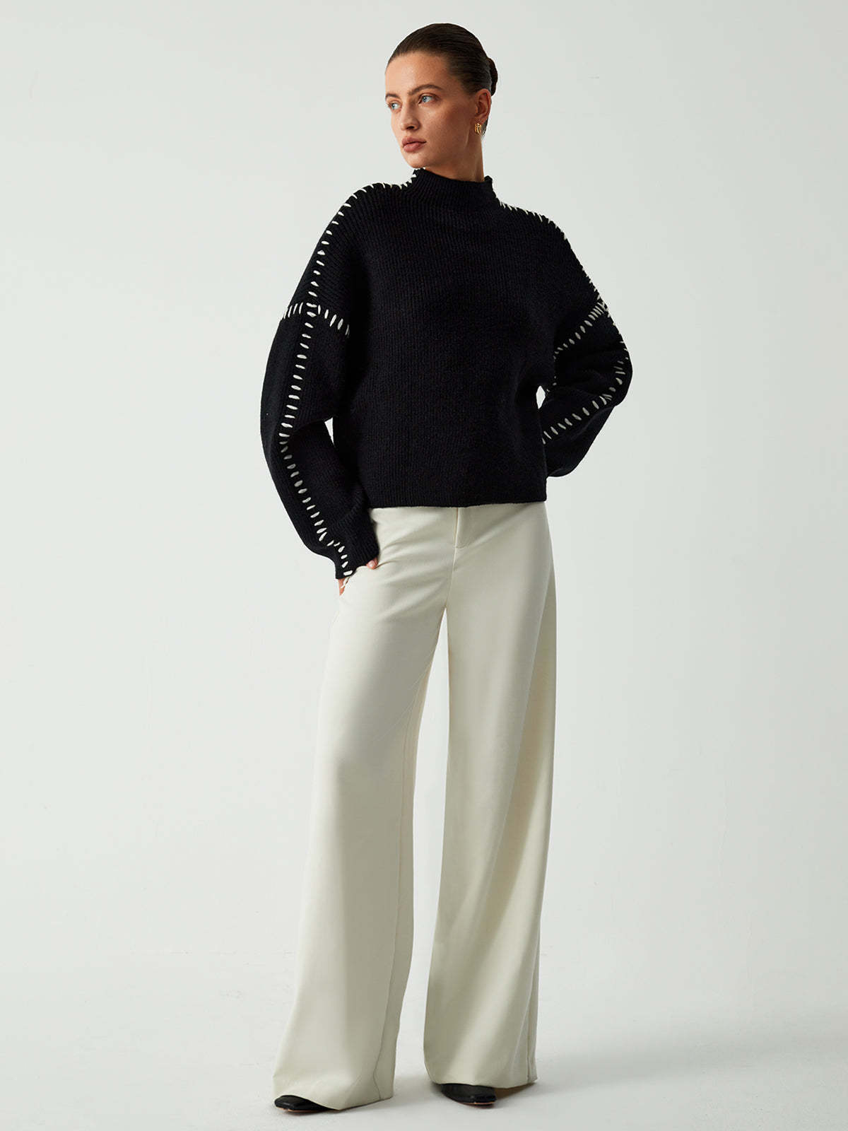 Pull Alma Col Roulé Avec Détails Piqués
