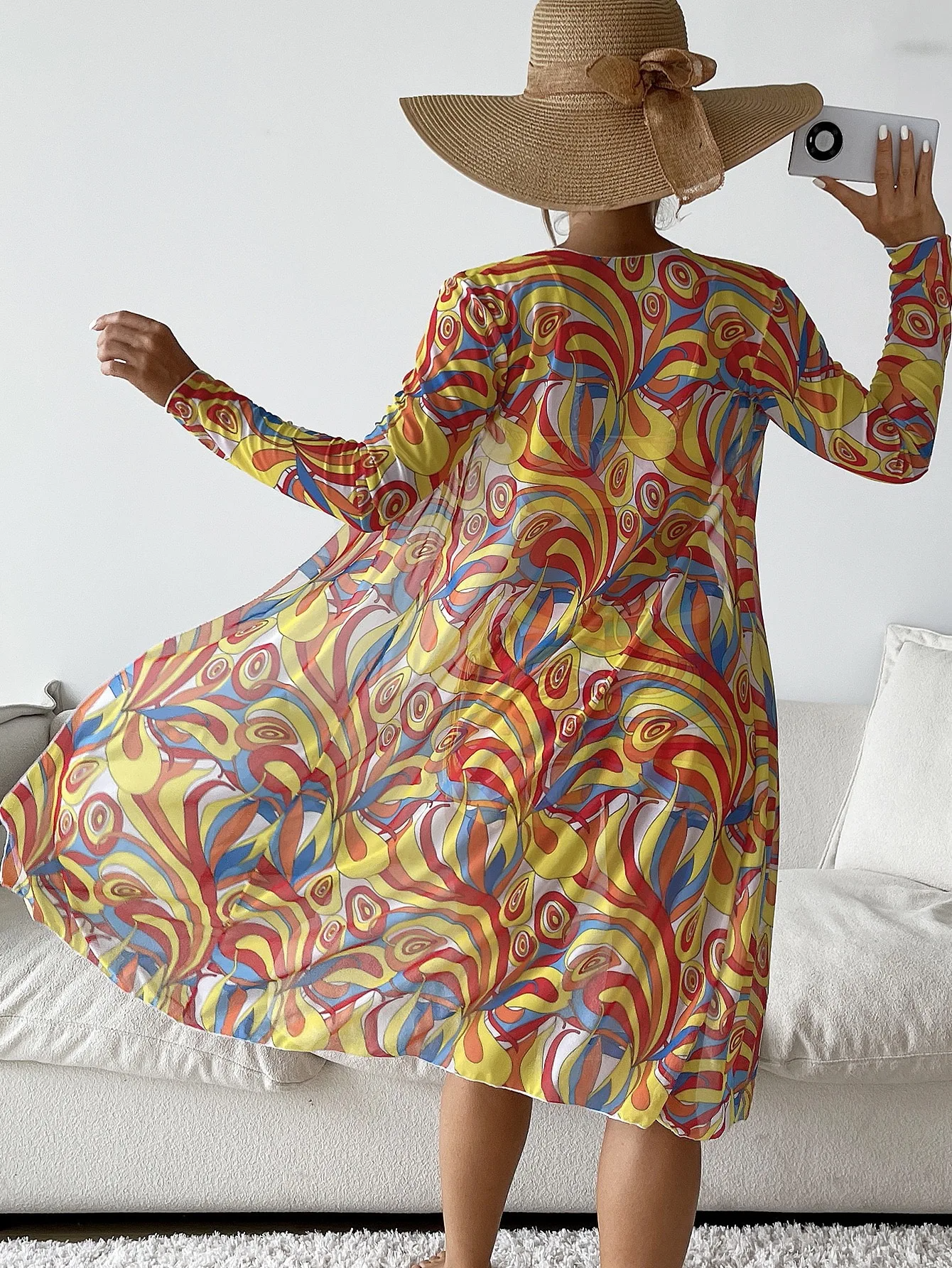 This three-piece swimsuit set comes with a matching mesh cover-up that flows like a breeze. The vibrant prints evoke summer glamour, while the stretchy cut hugs all the contours of the body. This is not just a swimsuit; it's your summer outfit.