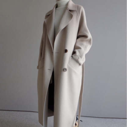 This belted coat combines timeless elegance with exceptional comfort. Crafted from a luxurious wool blend, this coat offers a sleek and fitted silhouette, with refined lapels and classic double-breasted buttons that wrap you in warmth and style.