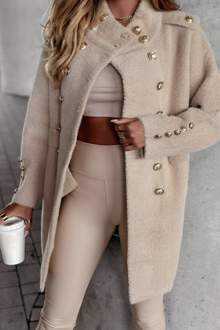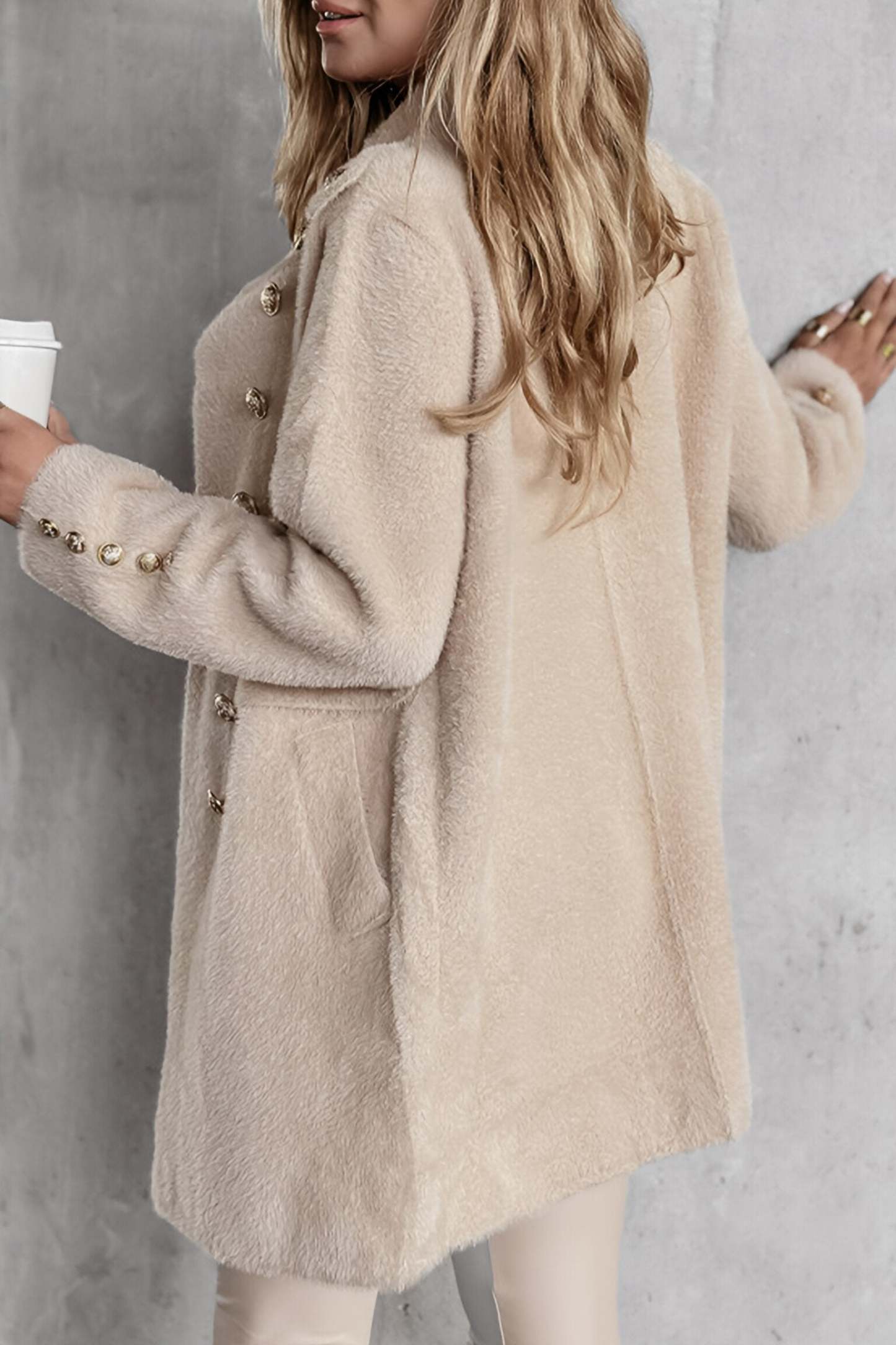 With its elegant high collar and long sleeves adorned with faux fur, this coat offers a perfect blend of style and functionality. It is ideal for everyday life or special occasions in cold weather.