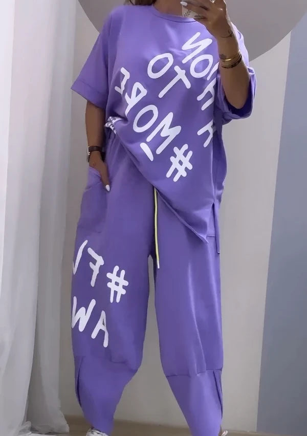 Le t-shirt et le pantalon casual peuvent être portés ensemble comme un ensemble coordonné ou mélangés à d'autres articles de votre garde-robe, ce qui permet des options de style infinies.