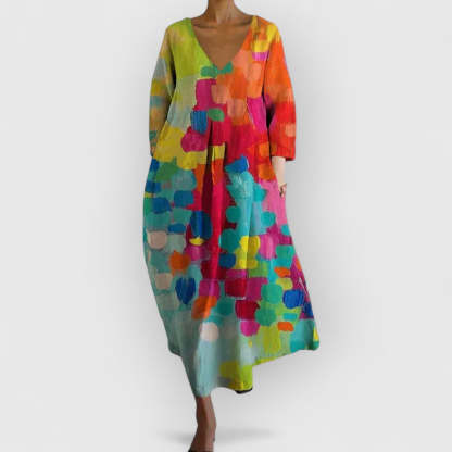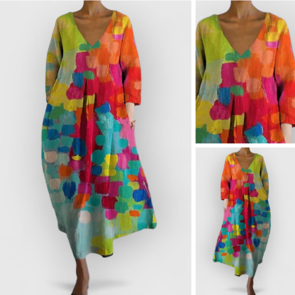 Robe Marta Décontractée Colorée À Col En V